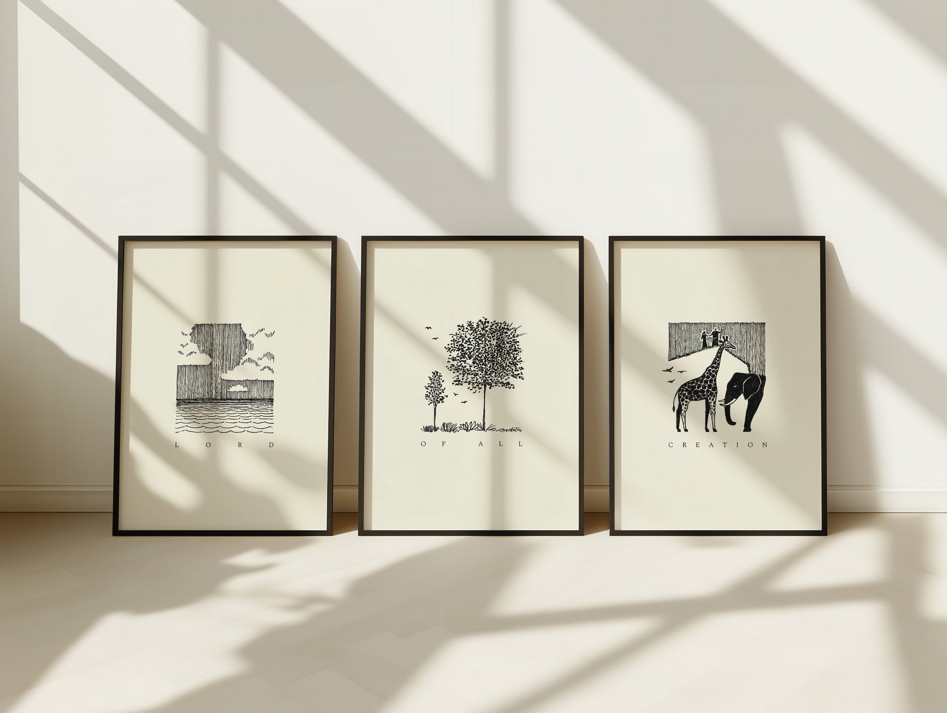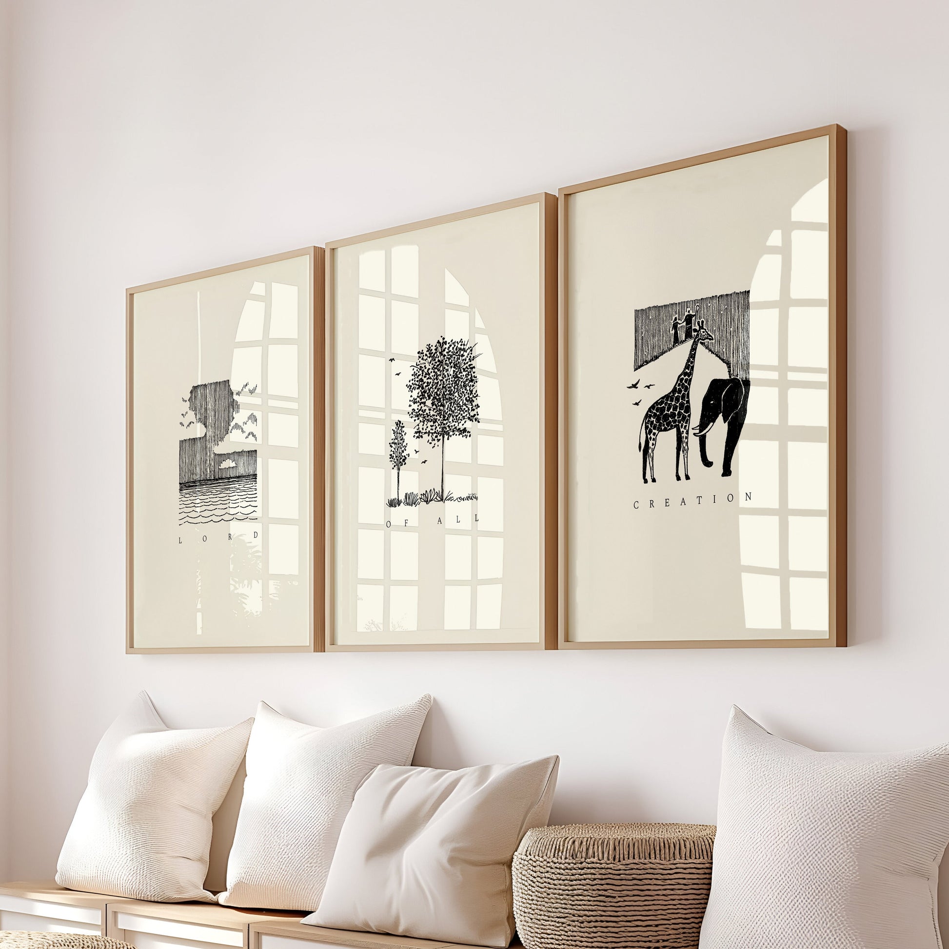 This Bible Sketch minimalist wall art print set says, "Lord of all creation" and is to remind us of Genesis 1, "In the beginning God created the heavens and the earth" and Colossian 1:16, "For by Him (Jesus) all things were created, both in the heavens and on earth, visible and invisible, whether thrones or dominions or rulers or authorities—all things have been created through Him and for Him."